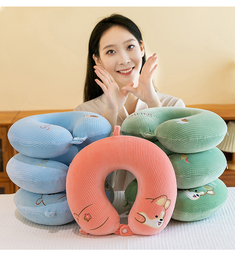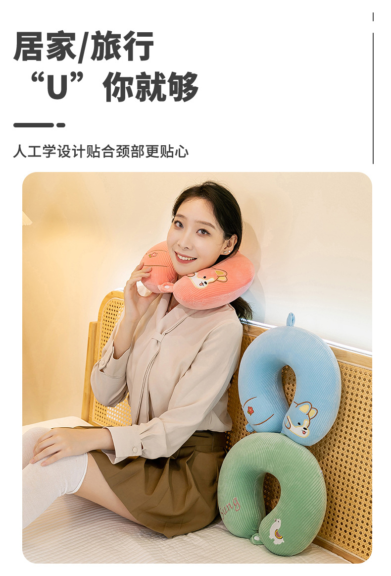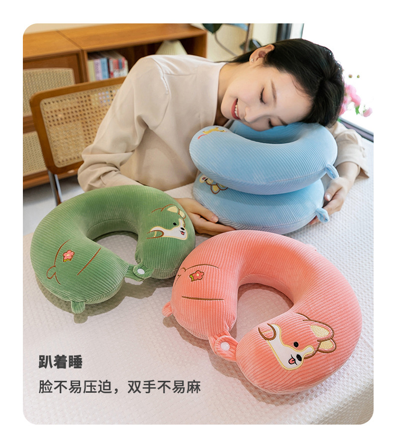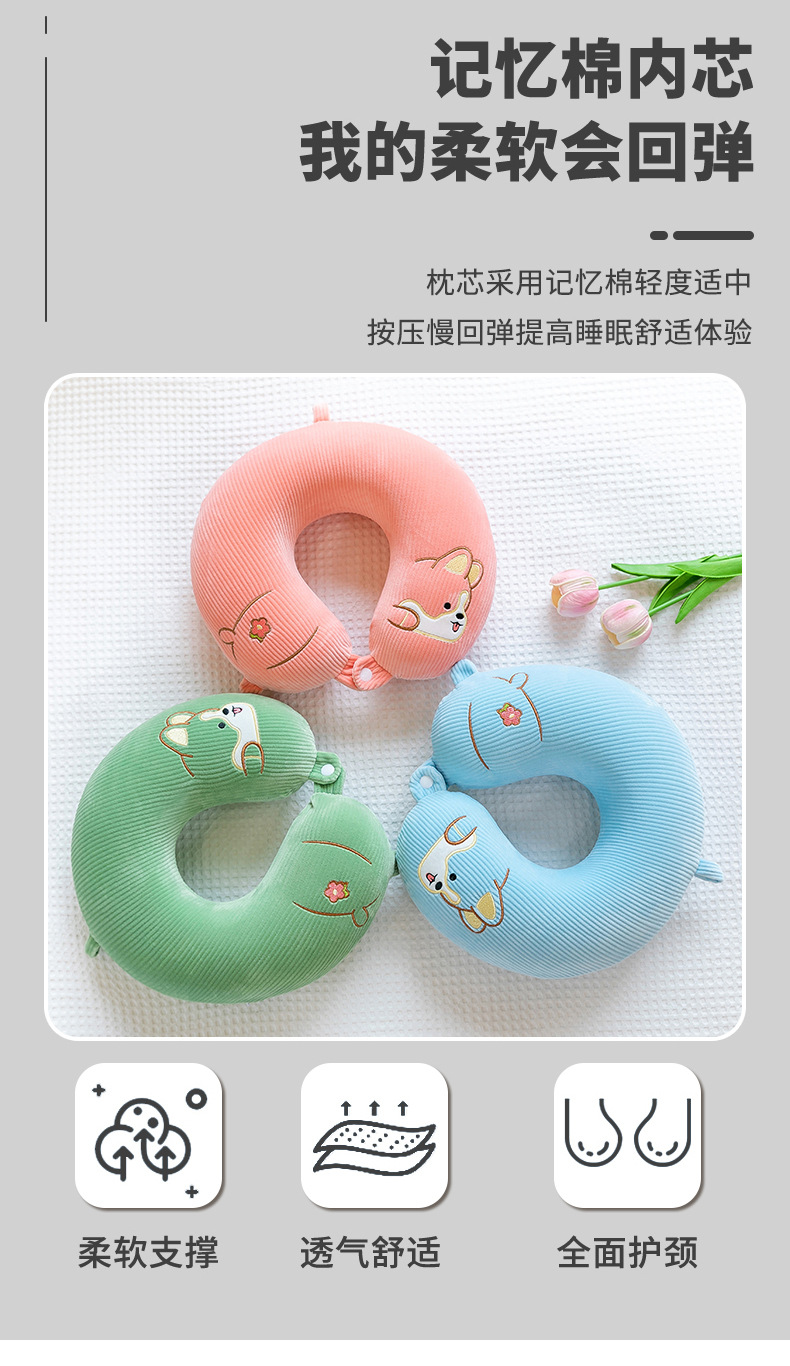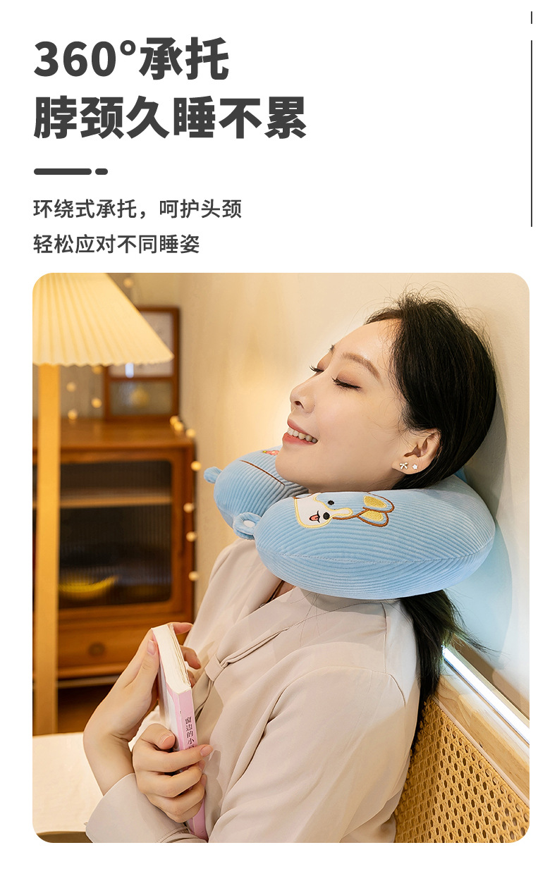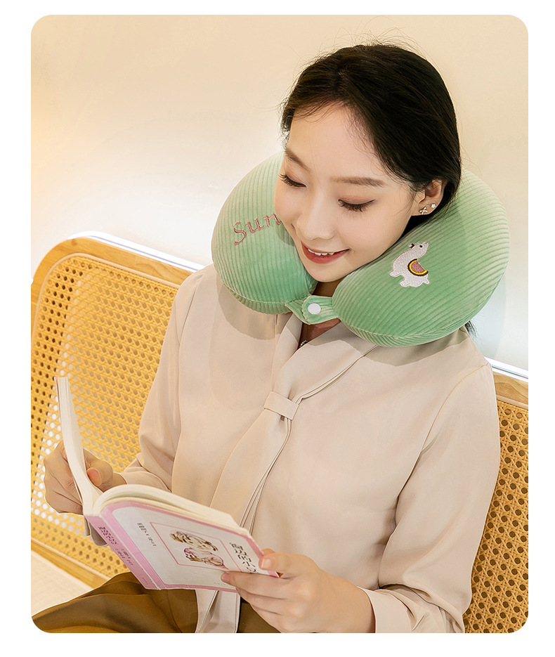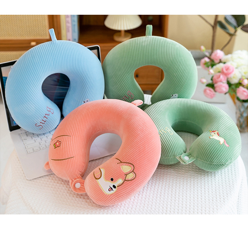 漫画刺繍ネックピロー、ベルベットU字型枕、学生旅行用ネックピロー、オフィス昼寝用枕、車載用枕