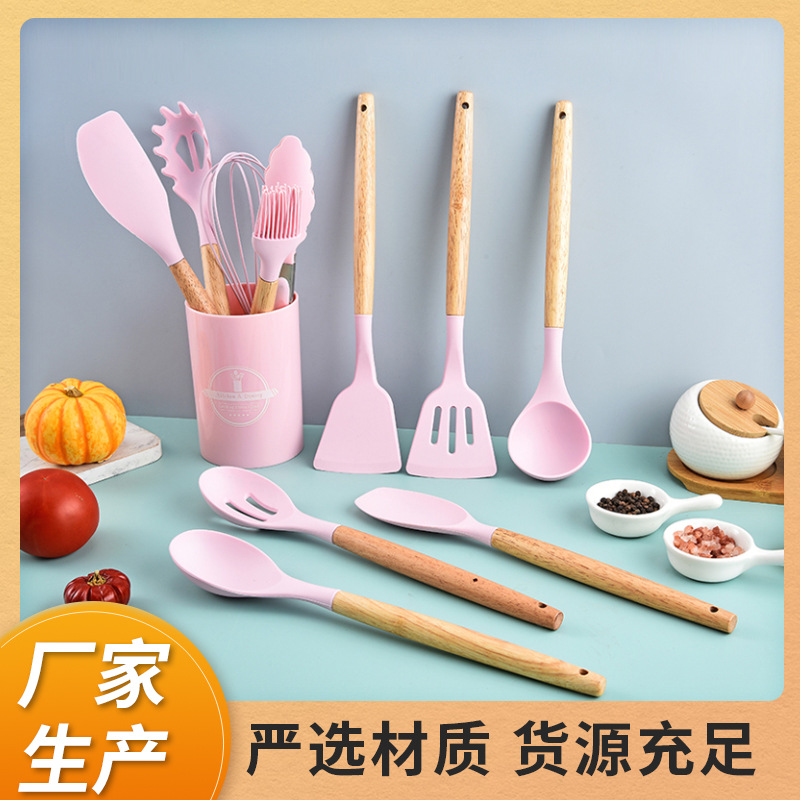 メーカー直販木柄シリカゲル調理器具12点セット耐高温多機能食品級スプーンシャベルシリカゲルセット調理器具