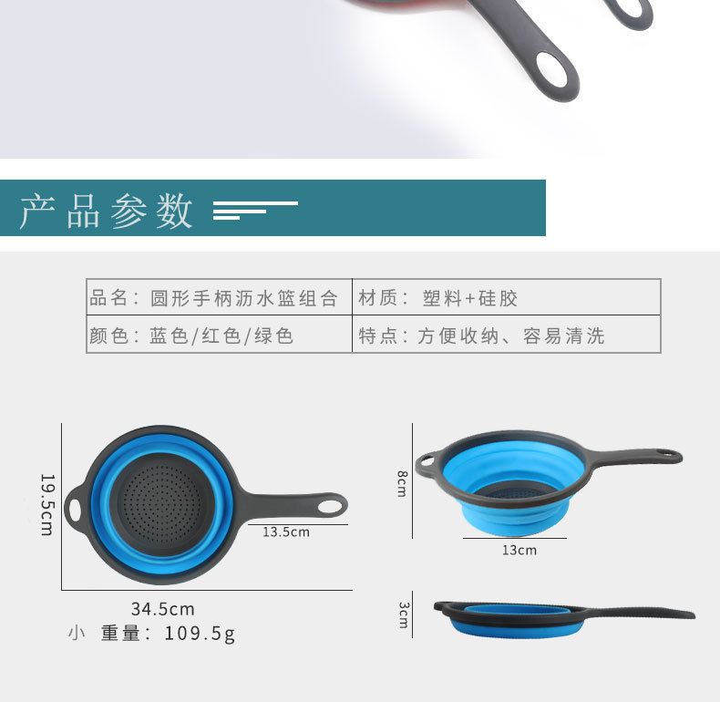 クロスボーダー多機能折りたたみ排水バスケットハンドル付きラウンド水フィルターバスケット格納式野菜洗濯バスケットキッチン労働者