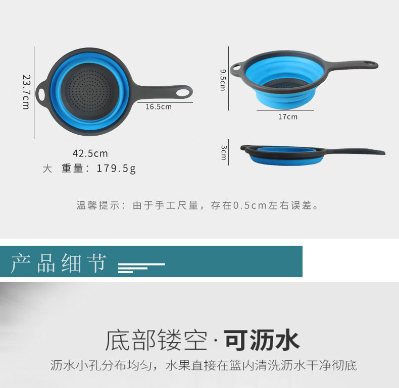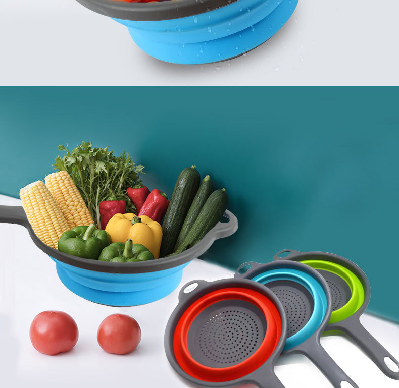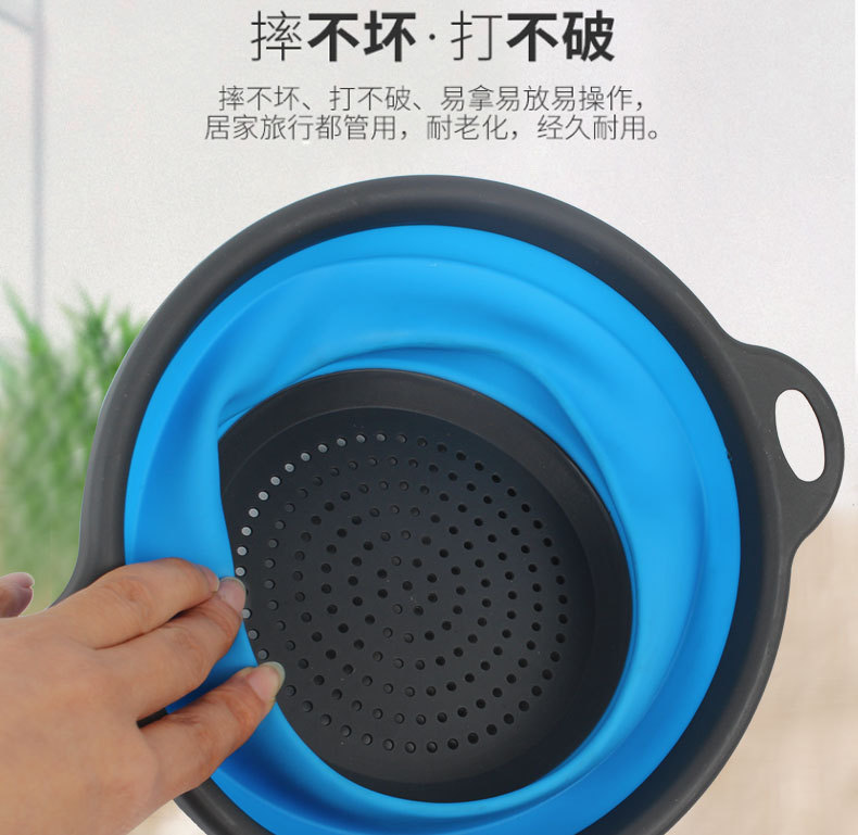 クロスボーダーシリコン折りたたみ式水ろ過バスケット、丸型折りたたみ式排水バスケット、キッチンツール、収納しやすいセット、家庭用バスケット