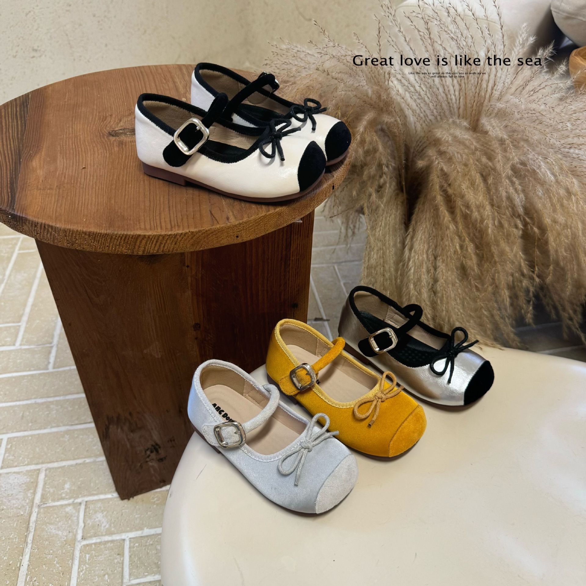 女の子の2025年春の新作韓国風ラブシューズ、小さな革靴、多用途でファッショナブルなラウンドトゥの女の子用プリンセスシューズ