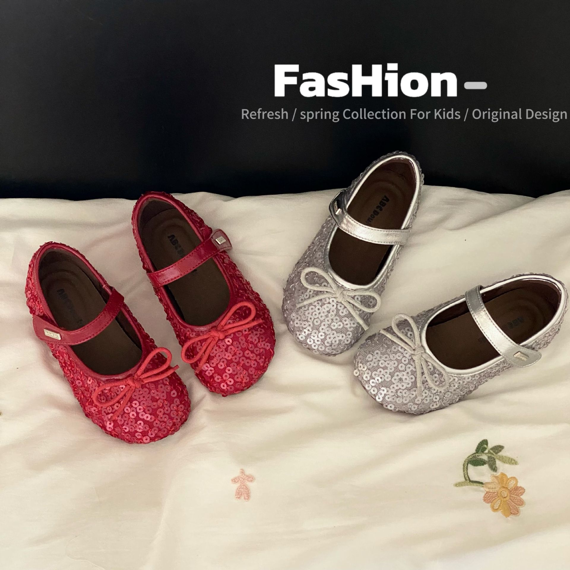 女の子プリンセスシューズ2025春と秋のファッショナブルな光沢のある中型と大型の子供用プリンセスシューズ多用途弾性バンド子供用ビーニーシューズ