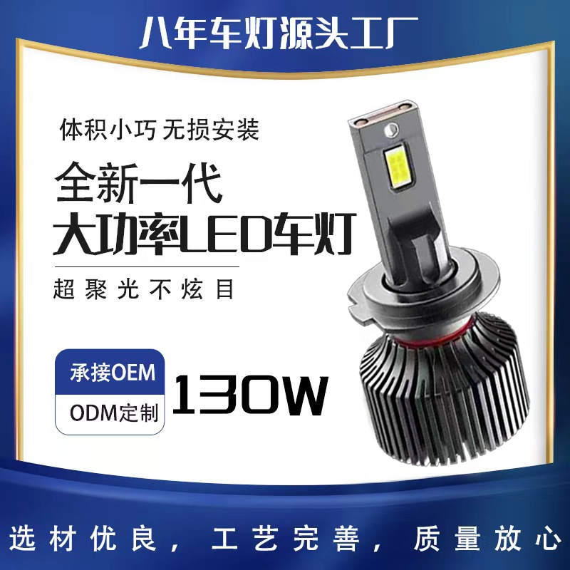 新型六銅管130Wハイパワー自動車LED大照明アップグレードled遠近光ライトh7超明るい光