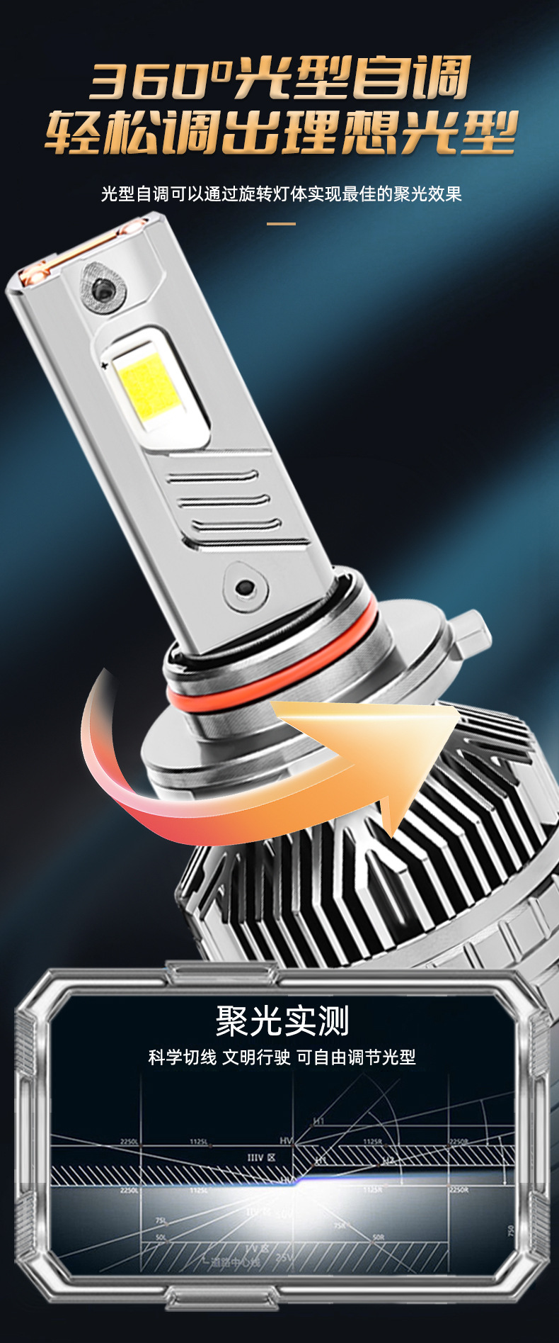 人気商品 1:1 車用LEDヘッドライト 海外販売好調 直接差し込み式H7 高輝度集光H4 高出力LED車用ライト