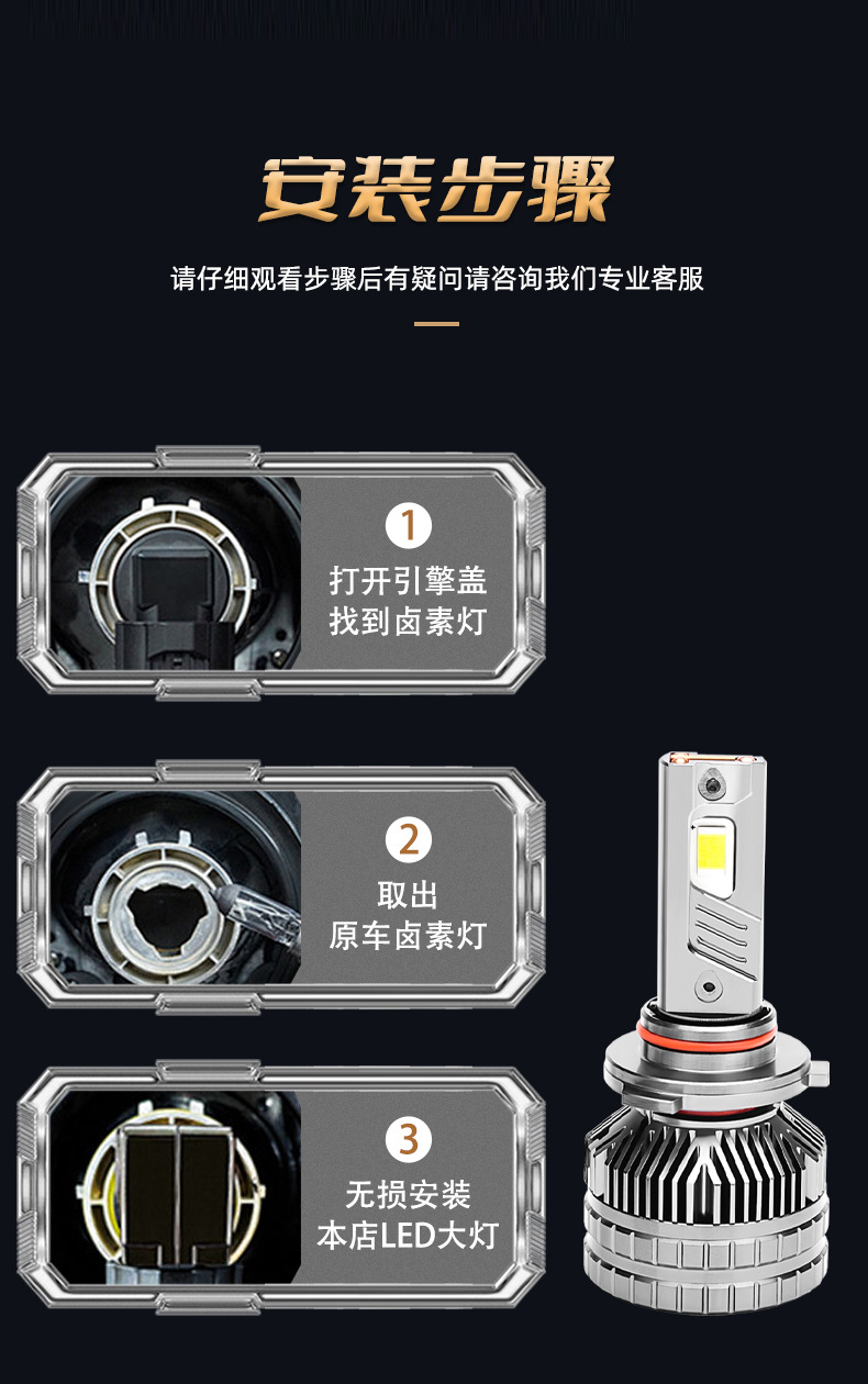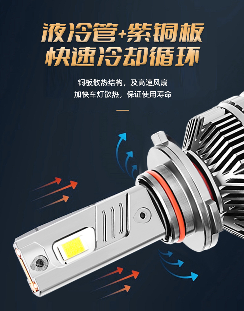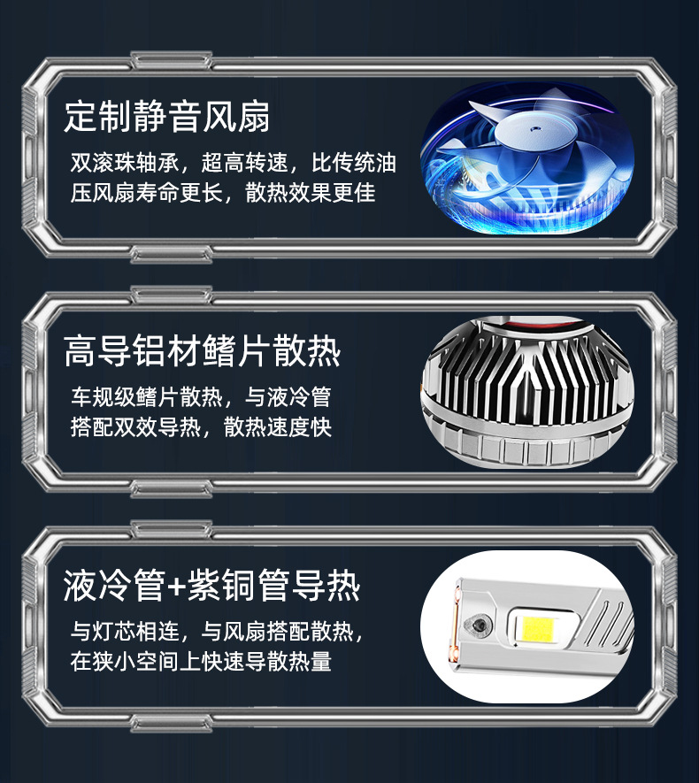 汽车led大灯大功率三铜管散热超静音风扇h7 远近一体汽车前照大灯