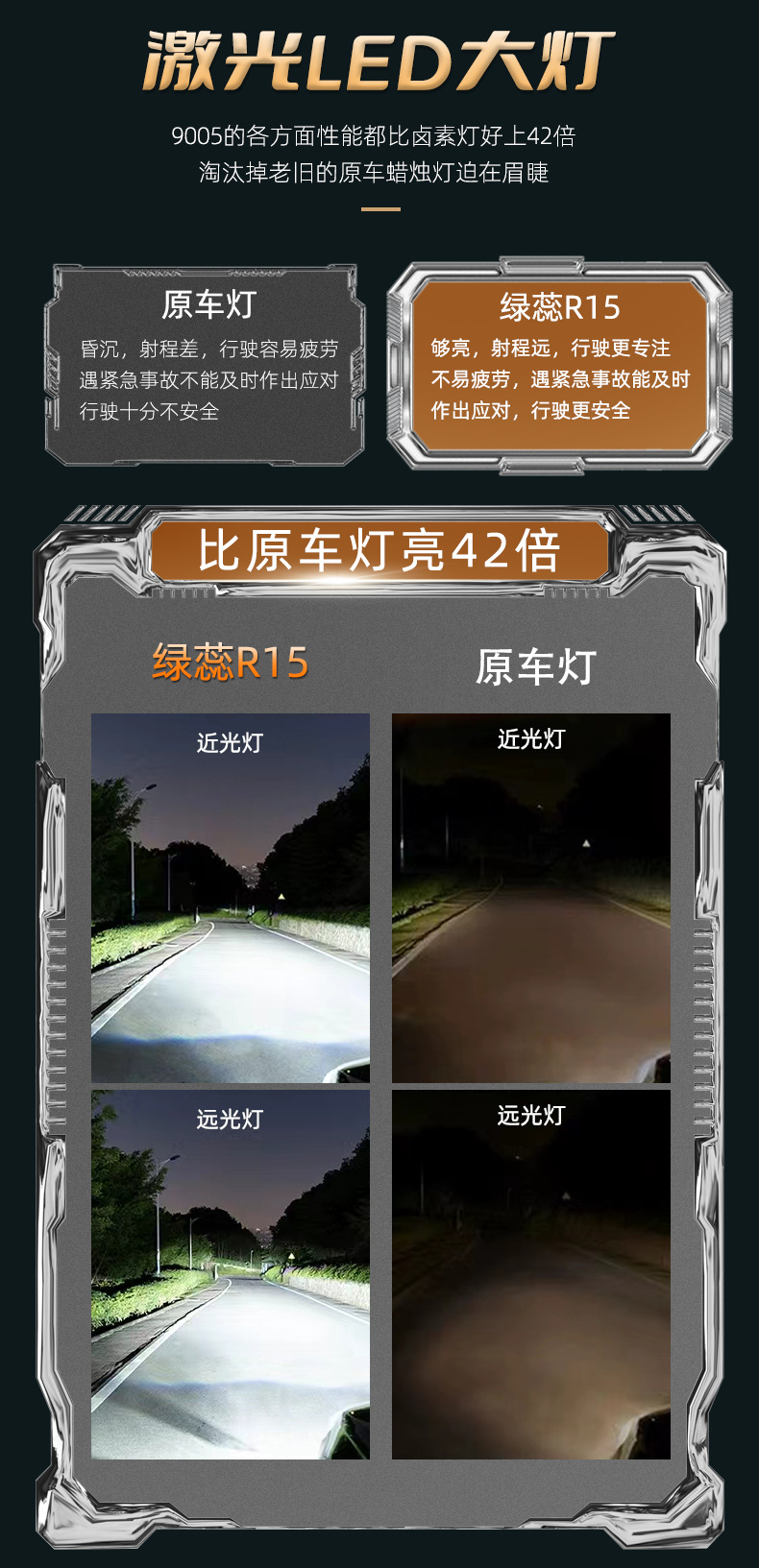 自動車レーザーヘッドライト強光ハイライトLEDライト遠光近光一体レンズ超亮集光改造電球