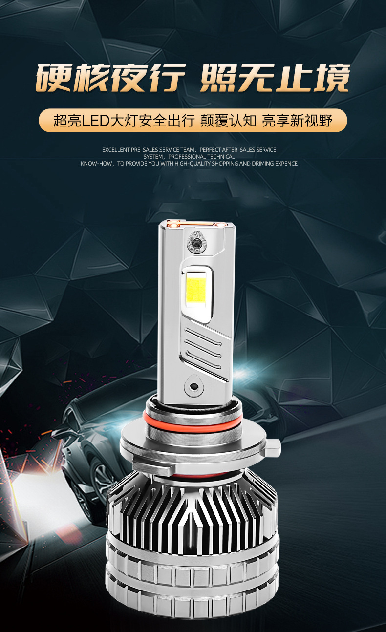 工厂现货大功率汽车LED大灯H1/H4/H7/H11 双铜管散热 激光LED车灯
