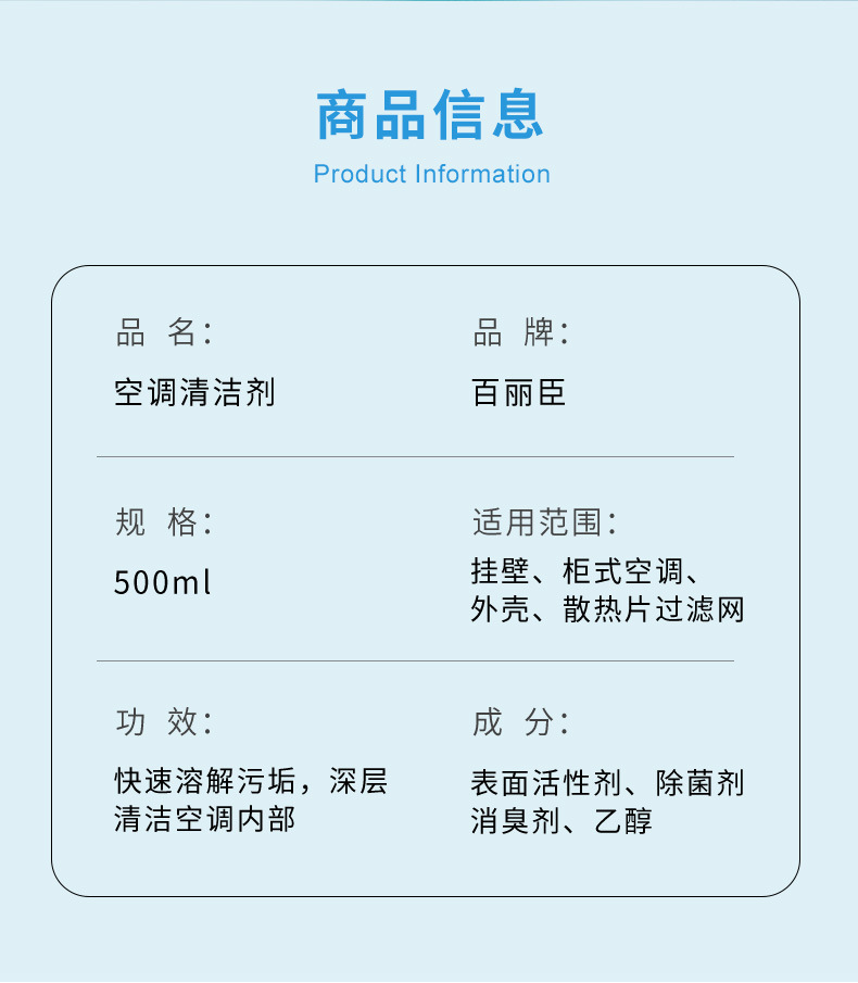 百麗臣エアコン洗浄剤家庭用吊り式キャビネット式自動車中央空調システムはスプレー洗浄剤を分解しない