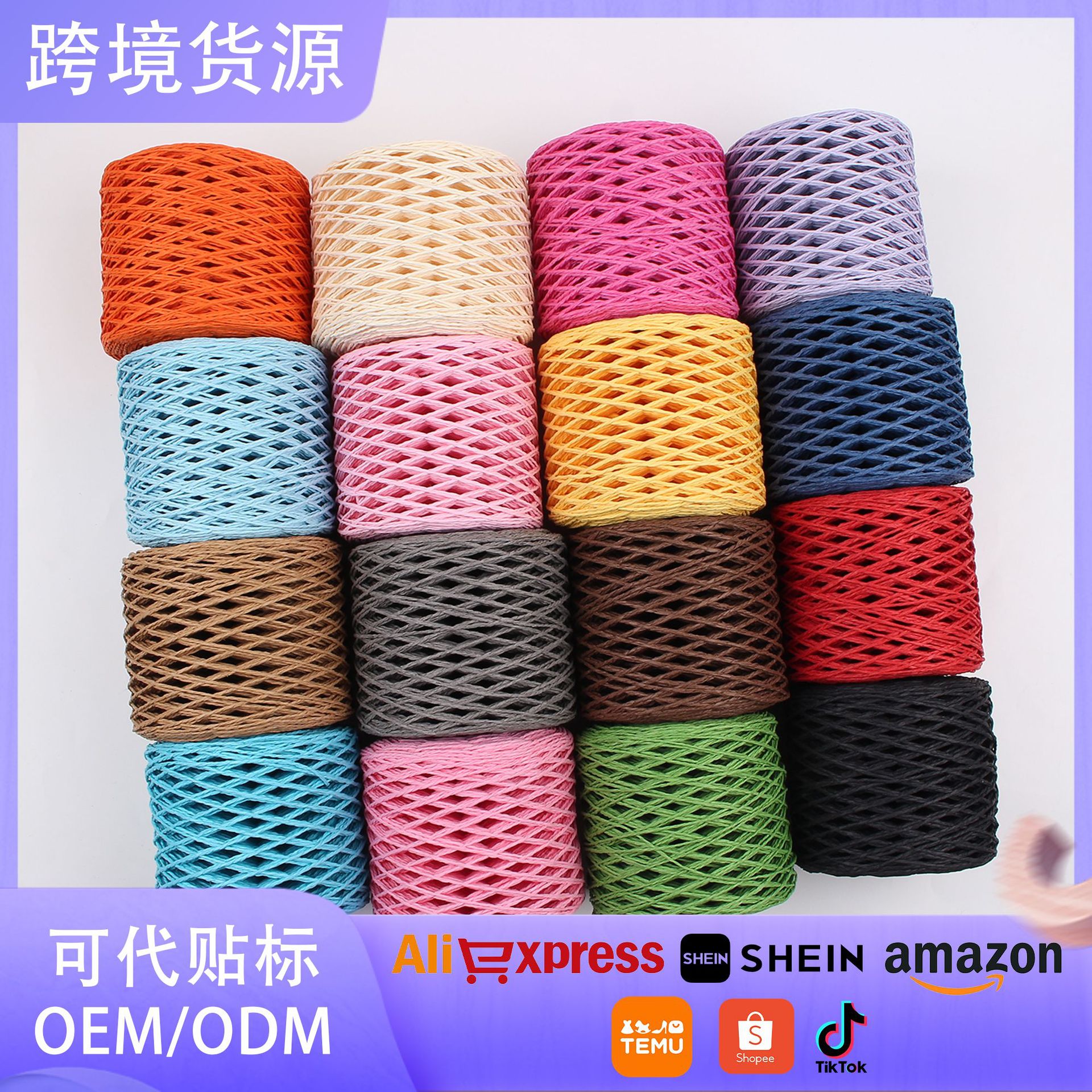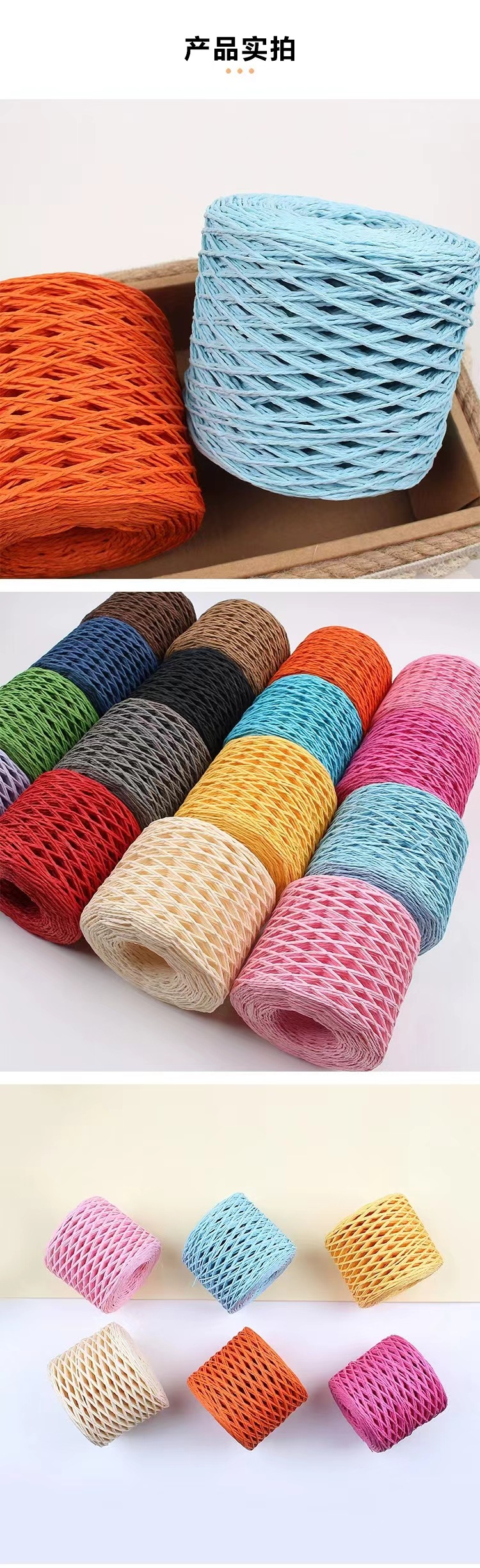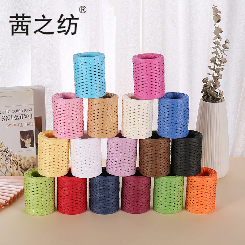 直接販売のラフィラ編みのカラー紙紐diy麦わら帽子カバン手作り編み紙紐プレゼント花束包装紐
