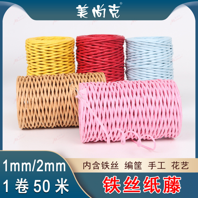 針金紙藤針金付き紙ひもDIY手編み花かご花瓶50メートル花包装結束
