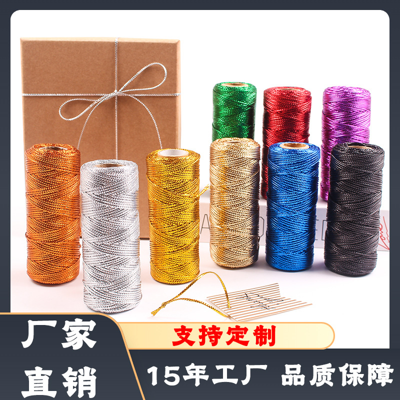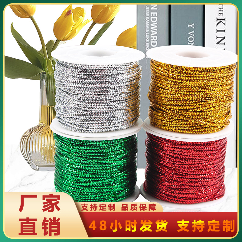1.5mmカラー金銀糸タグ紐16本撚り扁平中空編み紐ギフト包装紐銀糸金糸撚り糸
