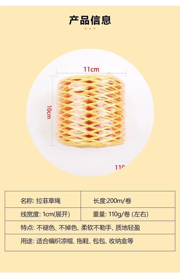 ラフィー草編み糸草編み材料綿草ラフィー草紐diy麦わら帽子手作りフックバッグ夏涼しい帽子専用
