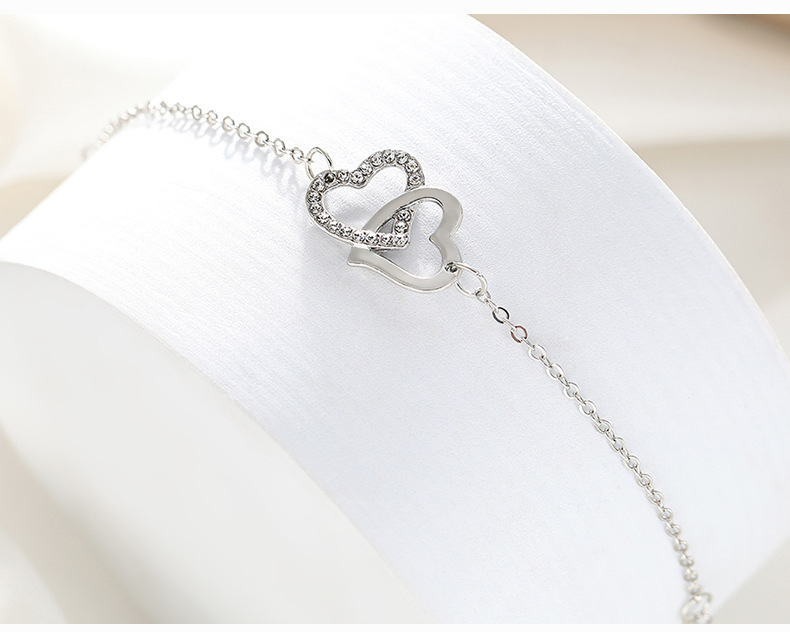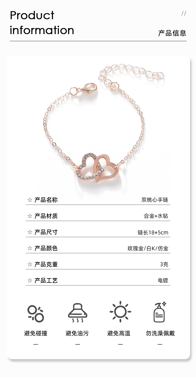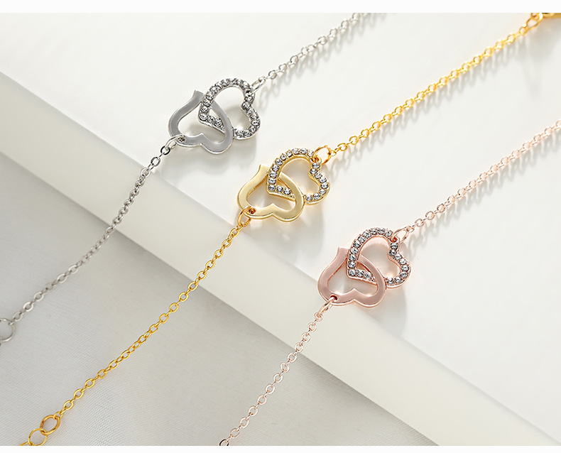 ローズゴールド ダブル ハート ブレスレット,ホワイトKダブルハートブレスレット,ゴールド ダブル ハート ブレスレット