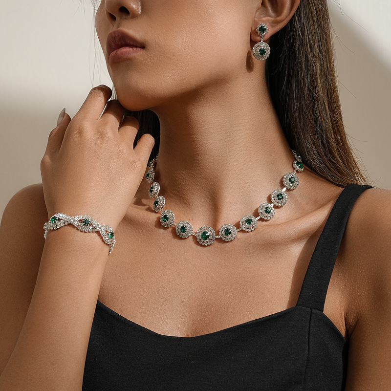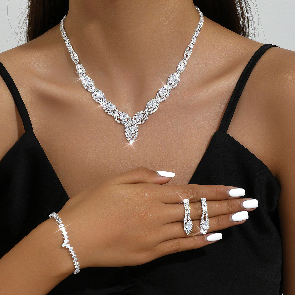 欧美新娘饰品项链耳坠首饰套装宴会礼服套链气质配饰批发水晶福字