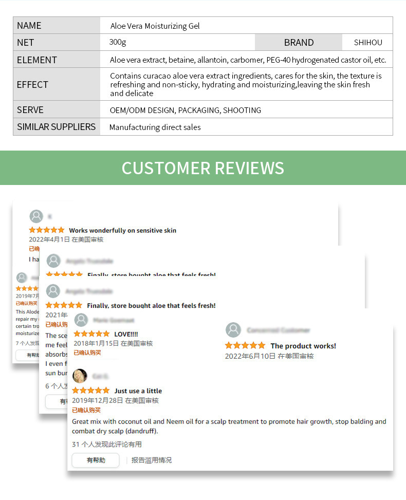 英語版アロエ潤顔保湿ゲル300gアロエペースト正品保湿精華乳水潤肌アロエペースト