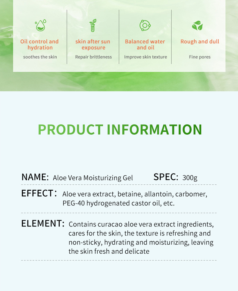 アロエゲル300g補水保湿エッセンスゲル日焼け後のエモリエントクリームアロエゴム卸売り代理