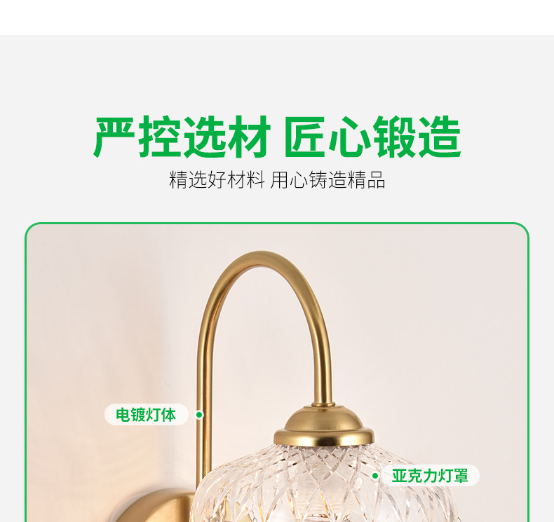 Daguan Yuan ウォールランプ寝室のベッドサイドランプライト高級通路廊下リビングルームの背景壁ランプレトロクリスタルランプ L271