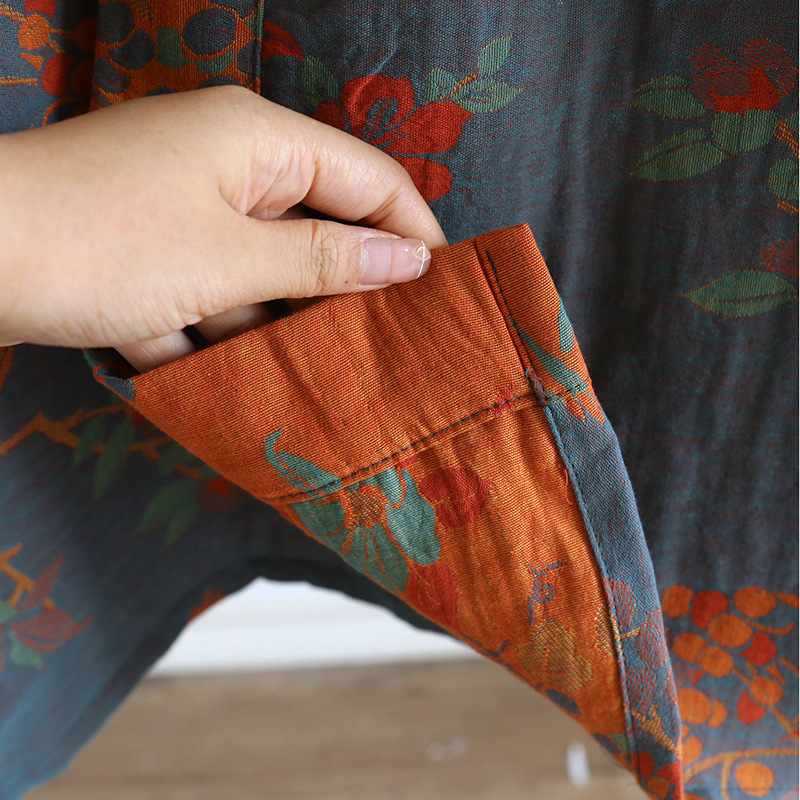 国の風の色は純綿の寝衣の女性の二重ガーゼの復古のジャカードの漢服の着物の家庭の浴衣の春と秋はゆったりしています。