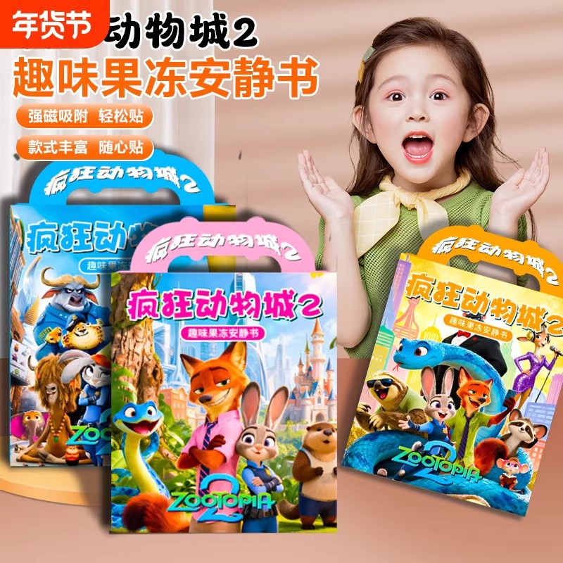 疯狂动物城2新款果冻贴安静书女孩手工diy儿童玩具贴纸换装公主