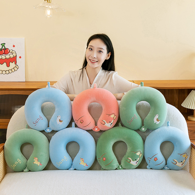 漫画刺繍ネックピロー、ベルベットU字型枕、学生旅行用ネックピロー、オフィス昼寝用枕、車載用枕