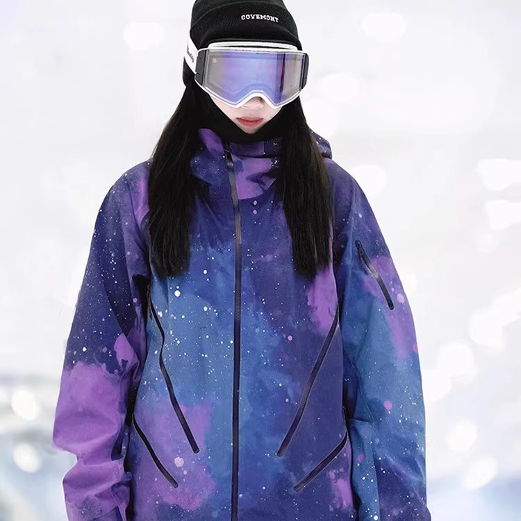 芙沿紫色星空滑雪服套装男女2025冬新款户外防风防水情侣双板雪服