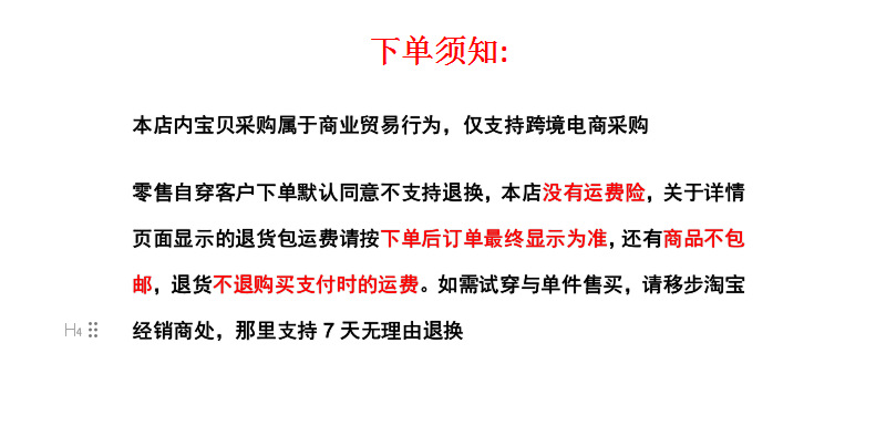 “本店所有商品及运费均不包含税价,如有 任何疑问,下单前请咨询客服。”