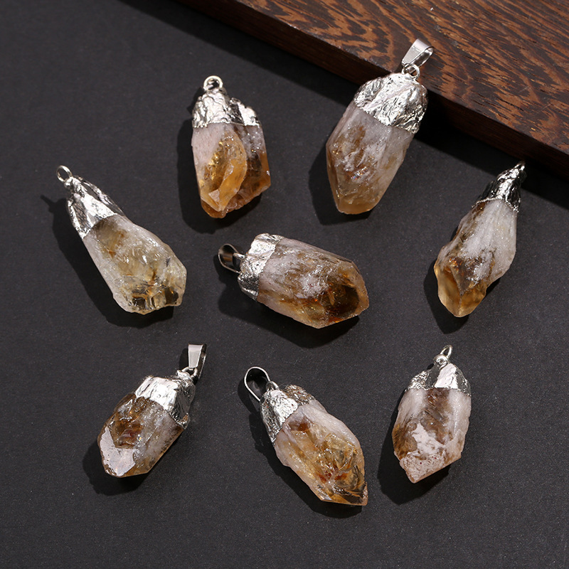 天然シトリンペンダント電気メッキ原石不規則なネックレスクリスタル砂利ペンダント diy ジュエリーアクセサリークロスボーダー
