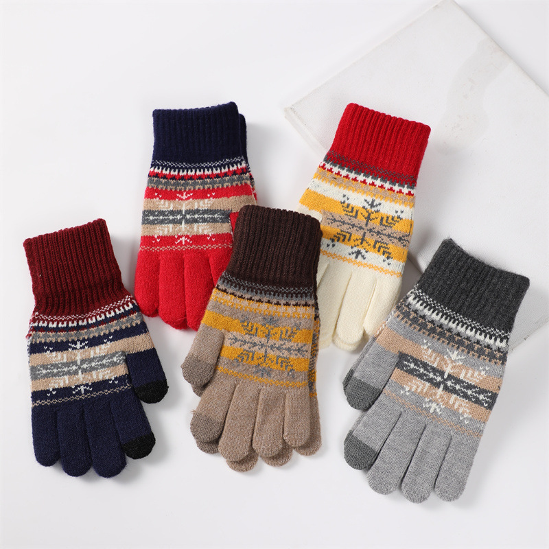 カップルの手袋の女性の冬の保温のかわいい毛糸の色のストライプのタッチパネルのネットのネットの防寒とベルベットの厚い学生の男性