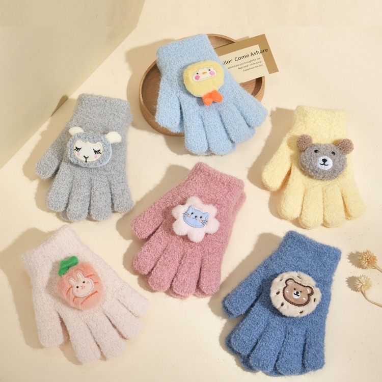 子供用手袋冬の五本指保温手袋男女の子供が乗って字を書くのがかわいい秋冬の赤ちゃんの防寒手袋