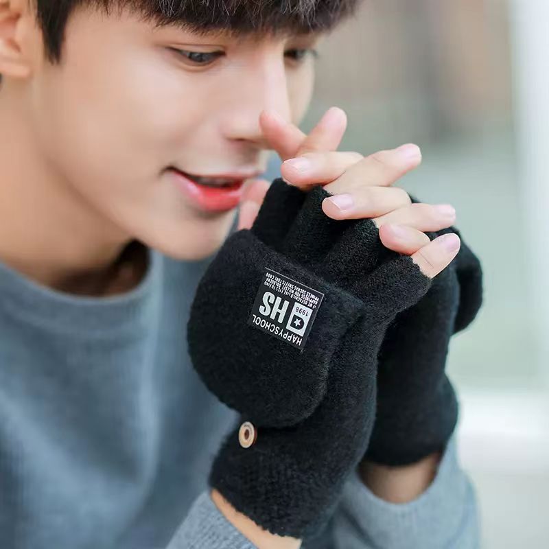 手袋 メンズ 冬 韓国風 おしゃれ 学生 ハーフフィンガー 5本指 フリップアップ 厚手 ニット 暖かい サイクリング 防寒 冬