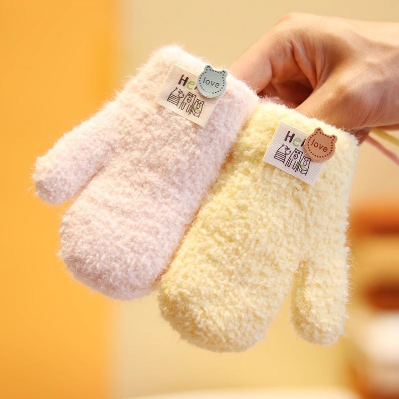 幼児用ホルターネック手袋、秋と冬、0-1歳の男の子と女の子、子供用プラスフリース、指を包み、暖かく厚くします。