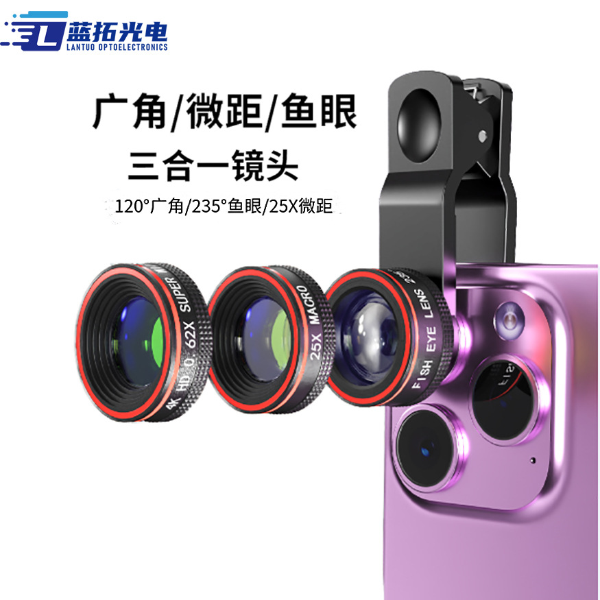 メーカー卸売0.62x超広角携帯電話マクロレンズ4k魚眼ハイビジョン外付け撮影三合一レンズ