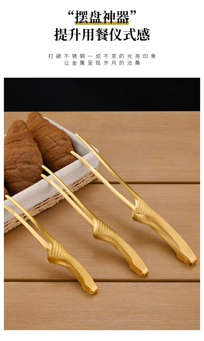 韩式烤肉夹子304不锈钢烧烤夹金色加长料理夹自助餐食物夹烤肉夹