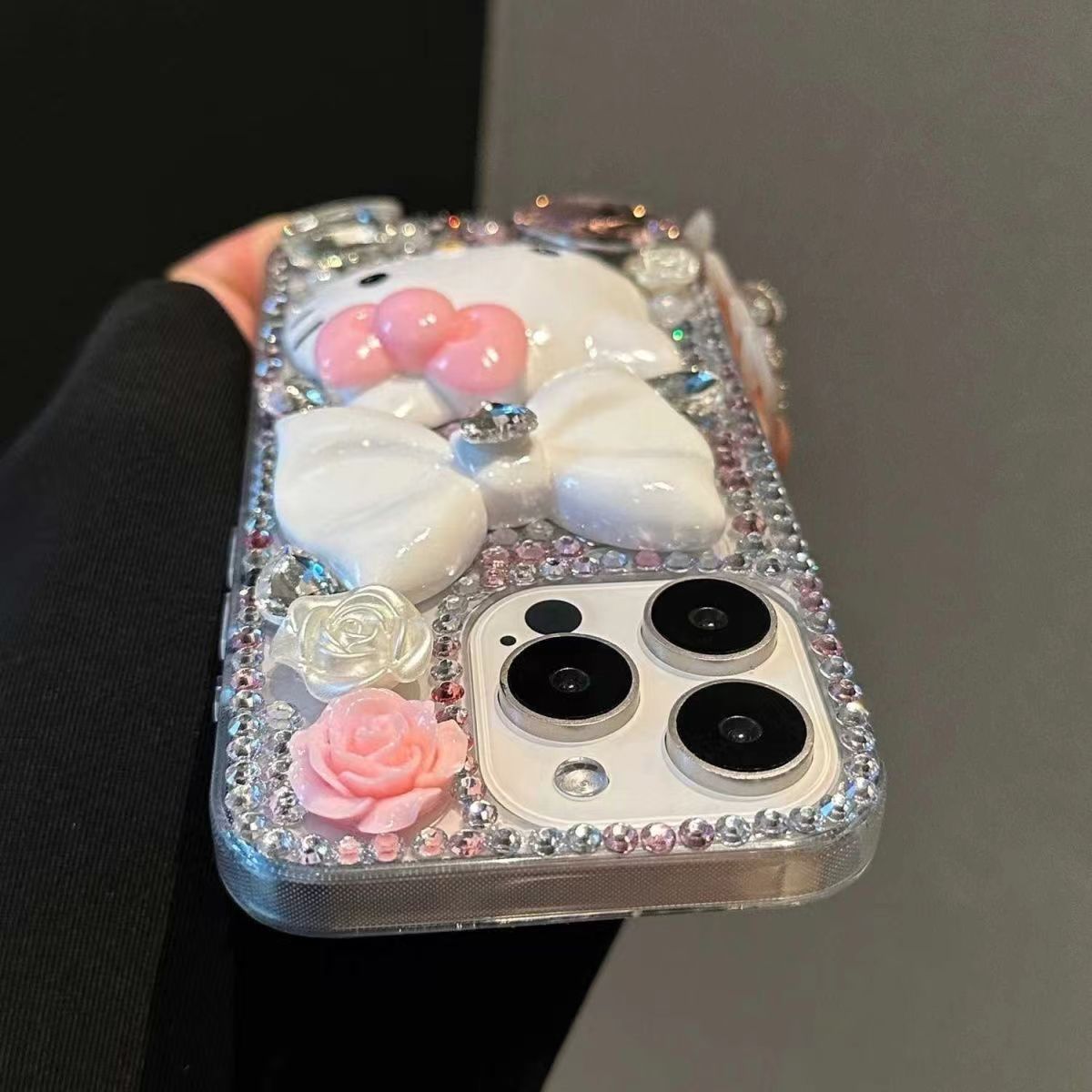 DIYラインストーン入りハローキティ風iPhone 17PROMAX用スマホケース、漫画風iPhone 16/15/14/13用保護カバー