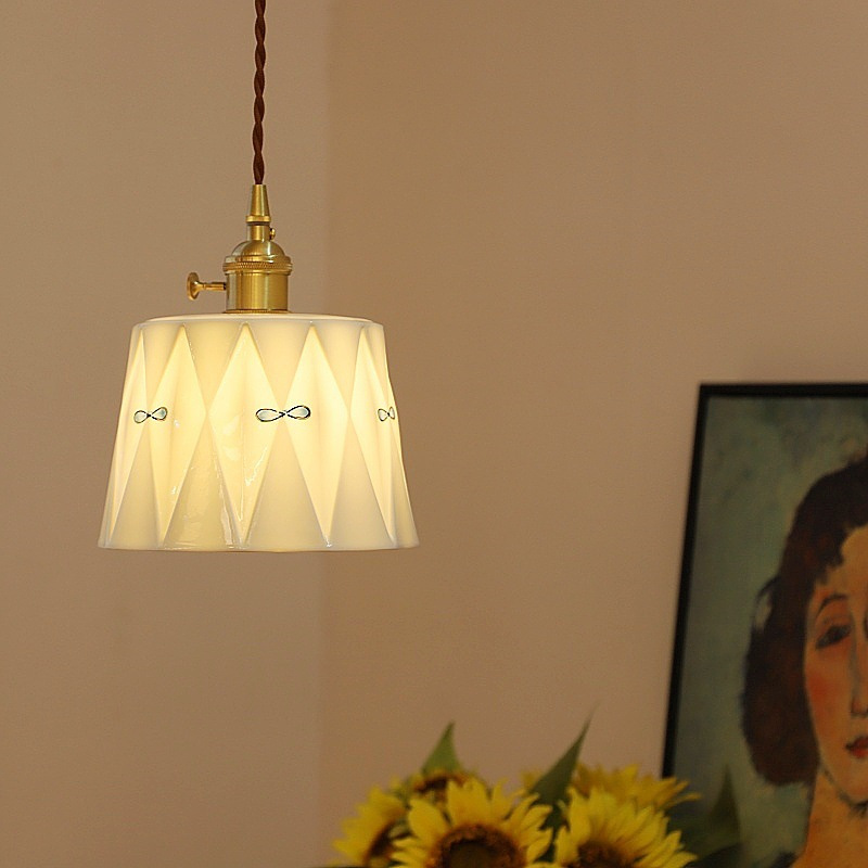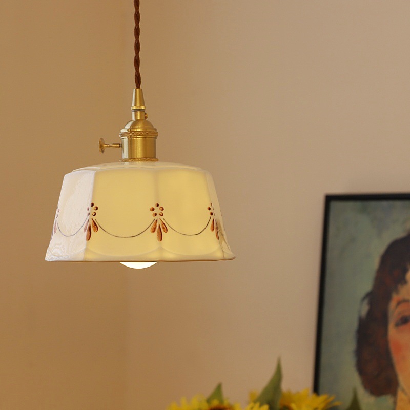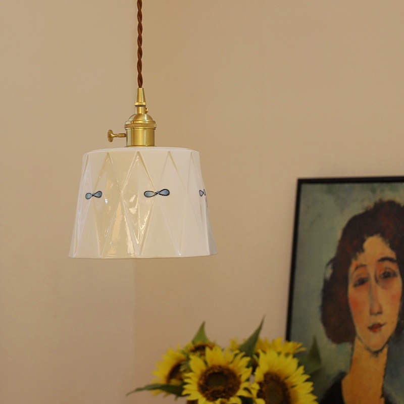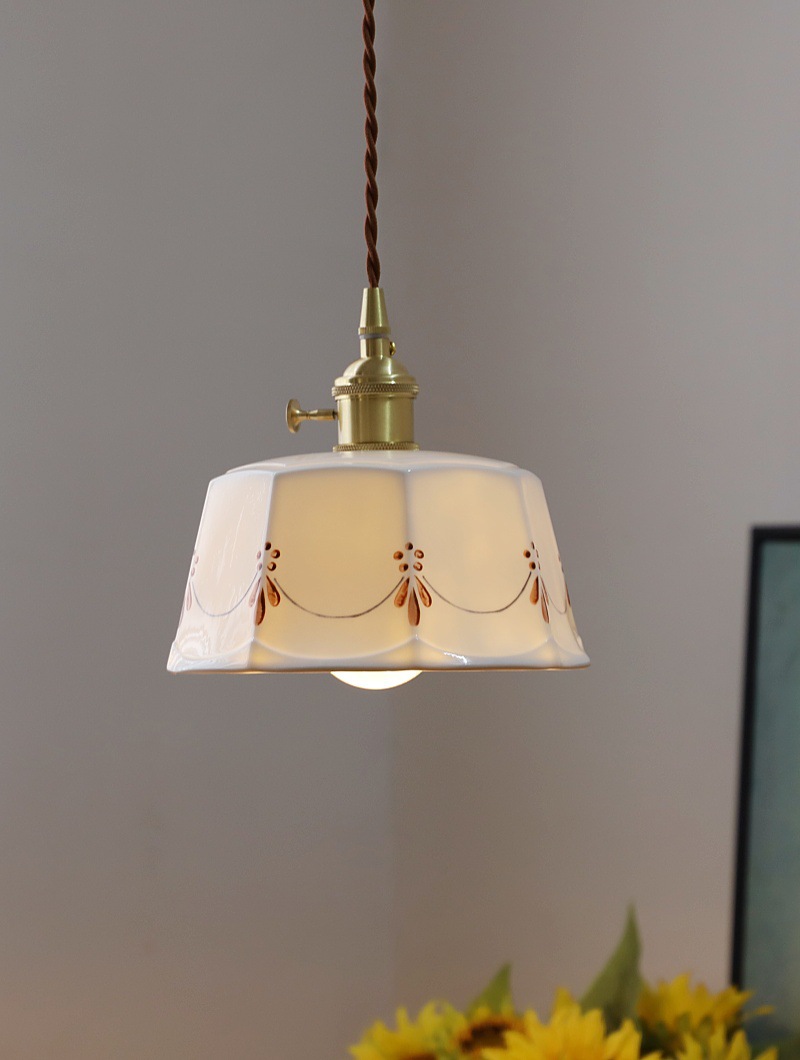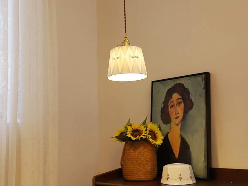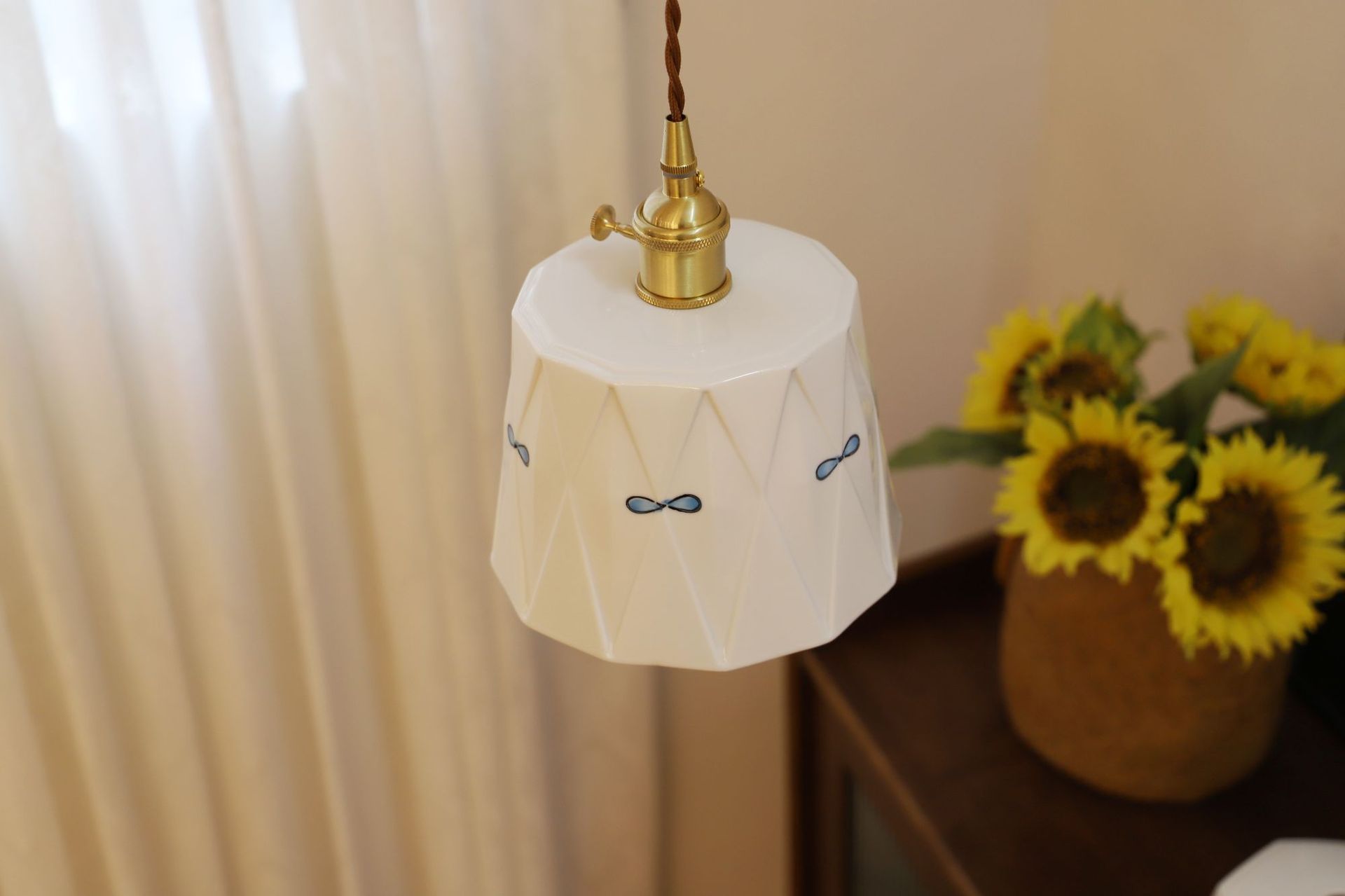 关于材质:这款釉面手绘陶瓷黄铜吊灯,汇集了师傅满满的心血,每个花瓣都是手工绘画后烧制的,釉面光滑精致。白色陶瓷晕染田园小碎花灵动可爱。灯头国标H65黄铜材质,灯头带开关灯头墙壁双控。两个款式供大家选择。