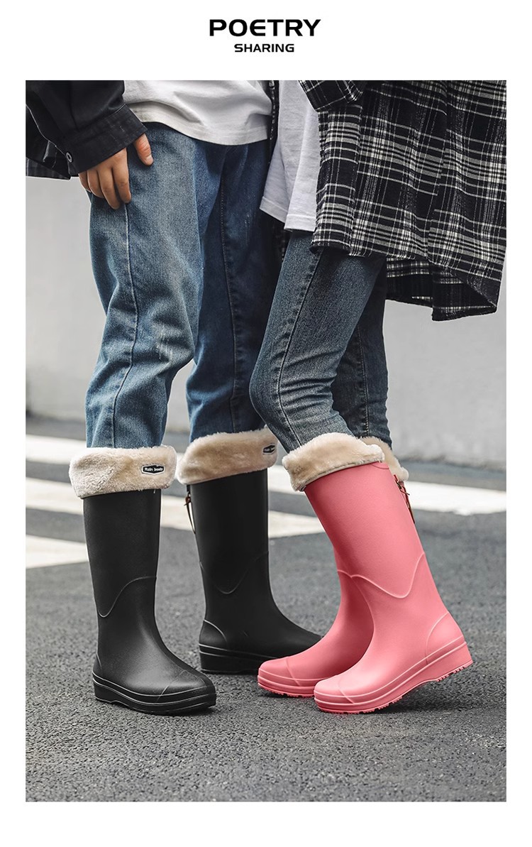 日本製レインブーツ女性用大人ブーツ秋冬綿ロングレインブーツ滑り止めファッションラバーシューズ西洋スタイルイン