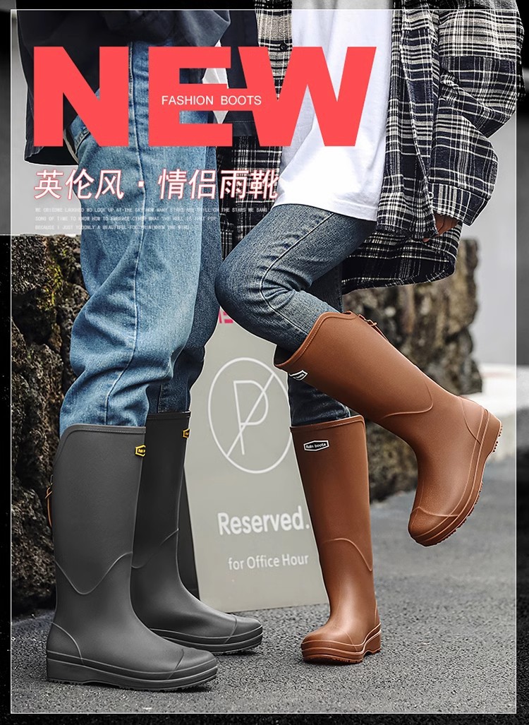 高筒雨靴女性日系滑り止め防水カップル雨靴男性長筒洗車作業耐磨耗ゴム靴釣り靴
