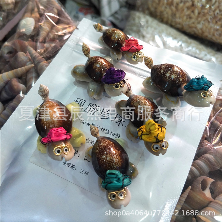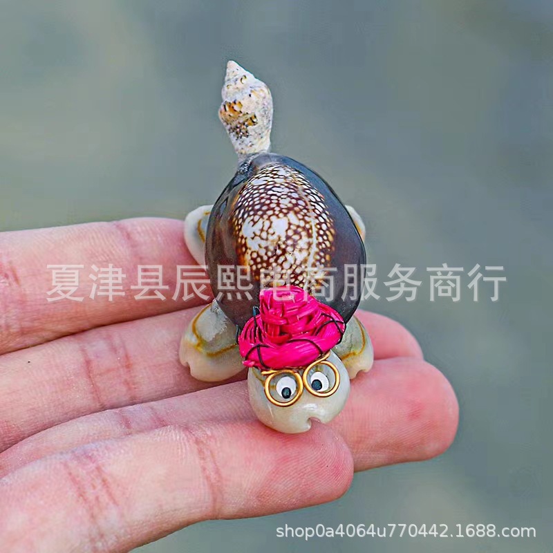 天然貝殻海螺工芸品小亀眼鏡博士亀家庭装飾置物露店夜市記念品