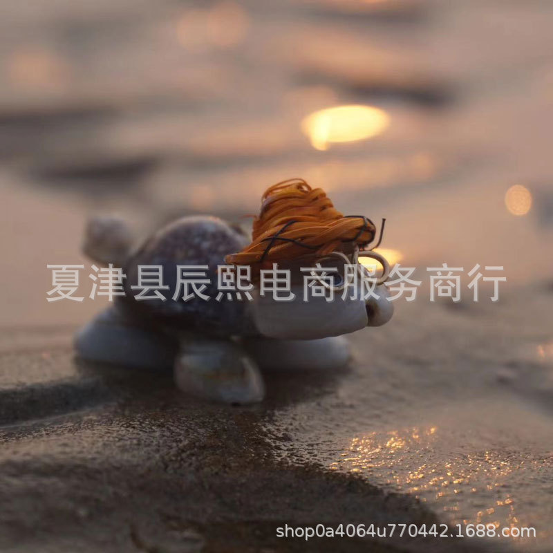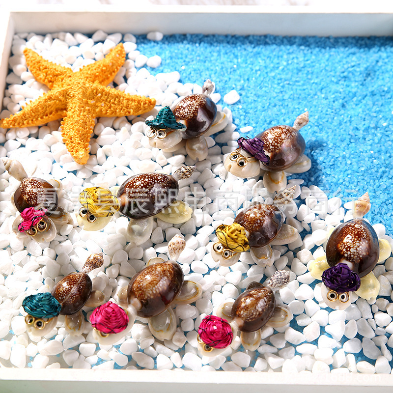 麦わら帽子亀小博士天然貝殻海螺装飾置物水槽地台手芸品微景観造景