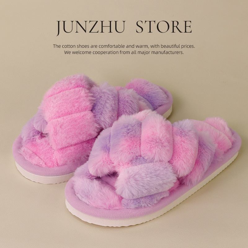 秋冬の女性用クロスボーダーファースリッパ、滑り止め屋内厚底ホームファーリー産後綿スリッパ