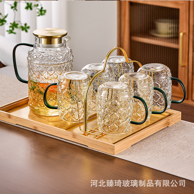 耐熱ガラス冷水筒樹紋家庭用冷水筒カップ大容量リビングガラスポット水筒カップセット