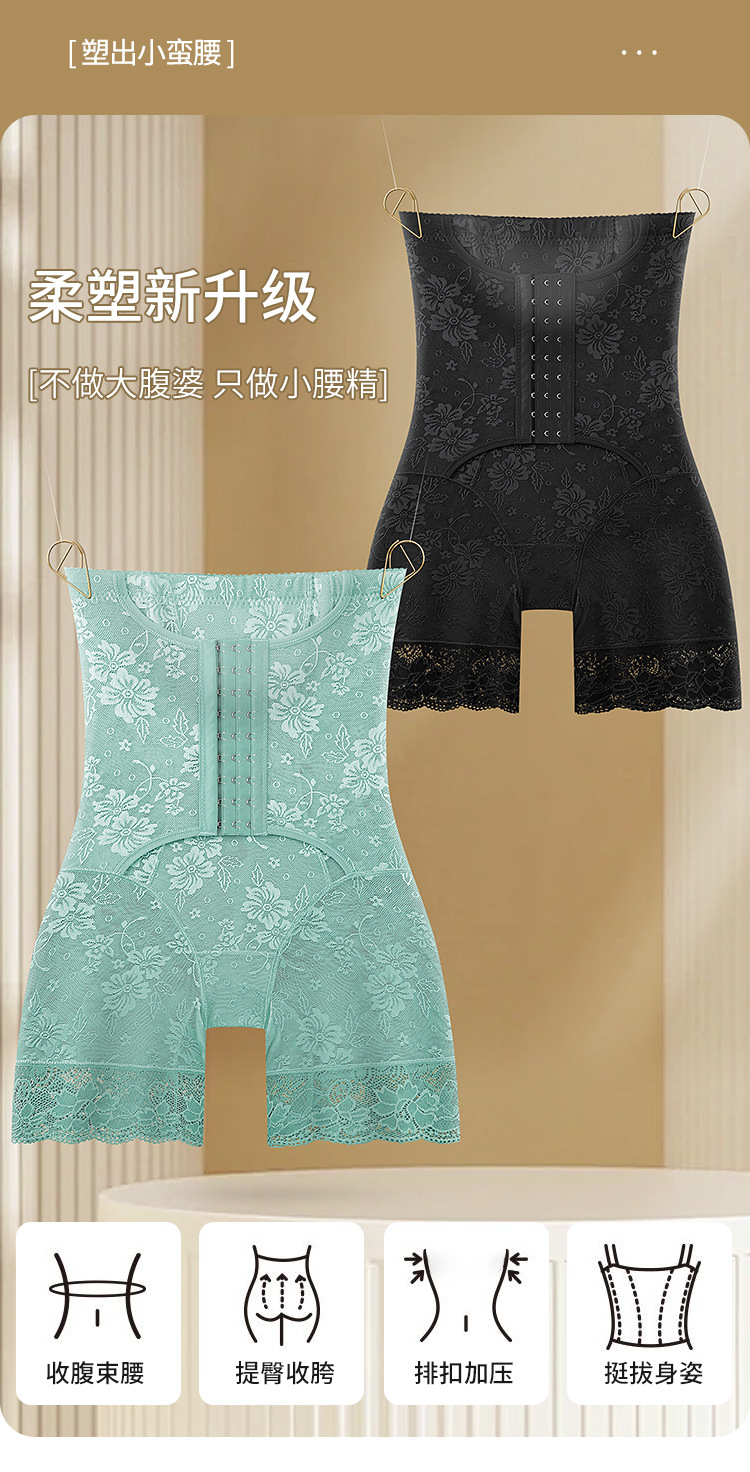 塑芙美平角は腹のズボンを収めた後に高腰を脱いで産後に尻を上げて腰のレースの美体を収めて身をなしてズボンの女性を作ります。