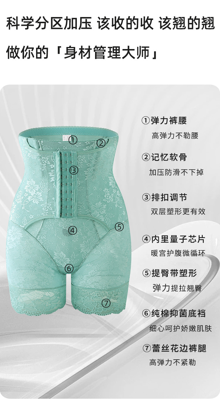 塑芙美提臀收腹裤高腰翘臀透气网纱女大码塑形美体平角塑身内裤