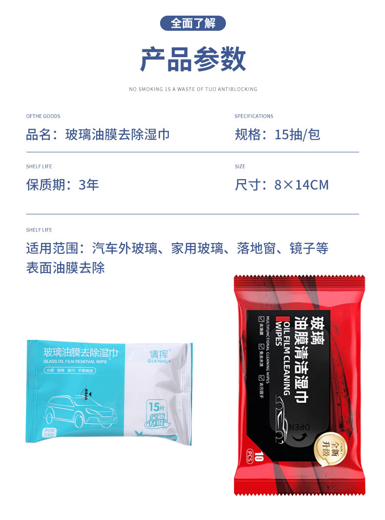 便捷式玻璃油膜湿巾一次性强力去油免洗车窗前挡风去油清洁湿纸巾