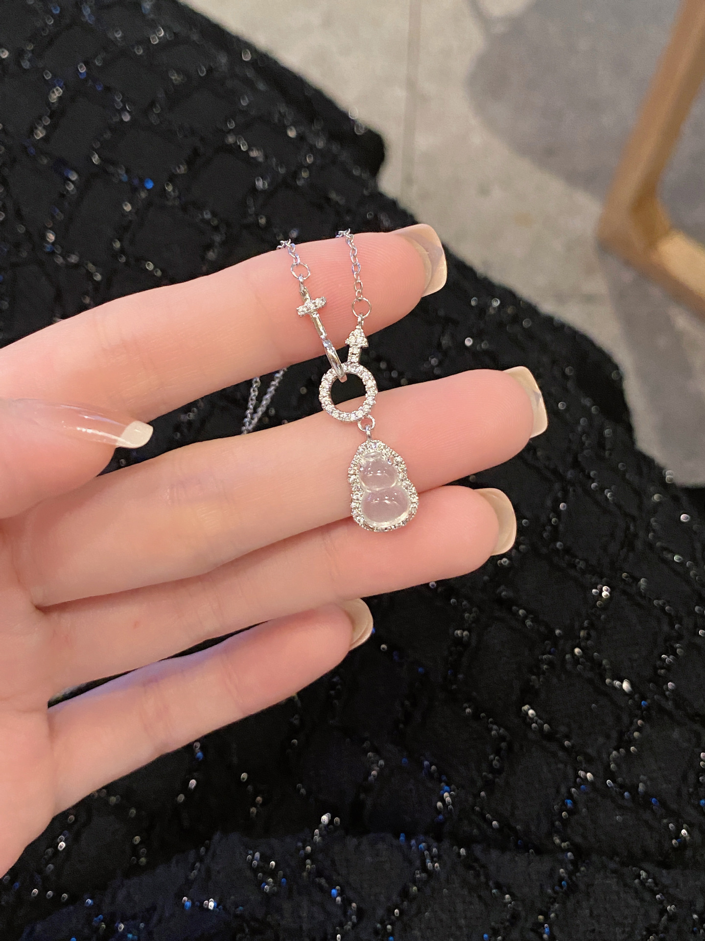 2025 新しい中国風ひょうたんネックレス、レトロでニッチな高級インターロックジルコン、女性用の新しい模造カルセドニー鎖骨チェーン
