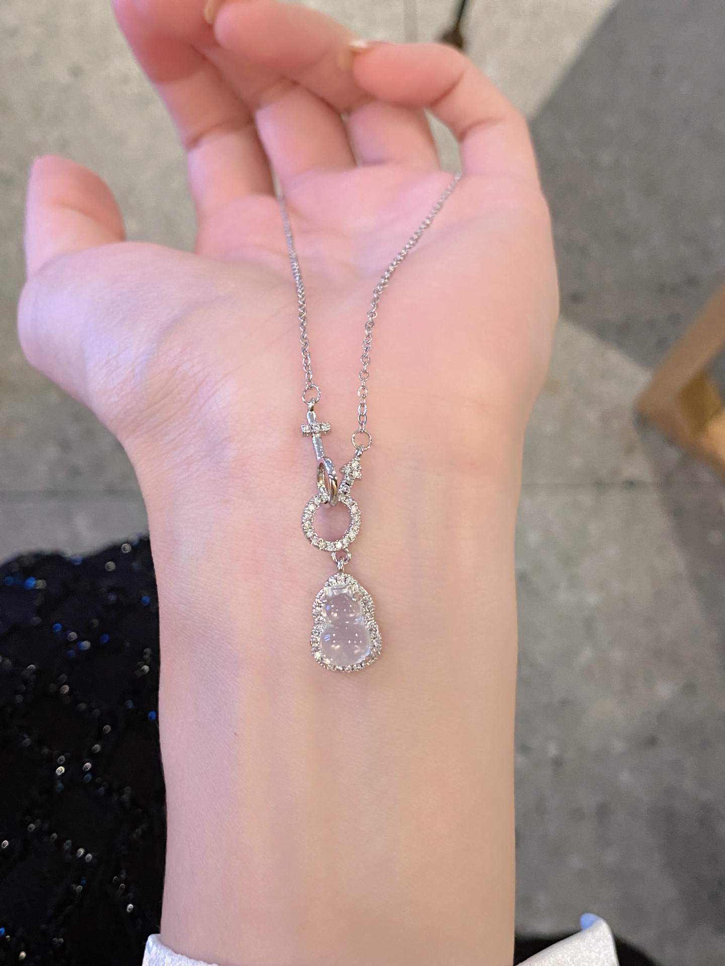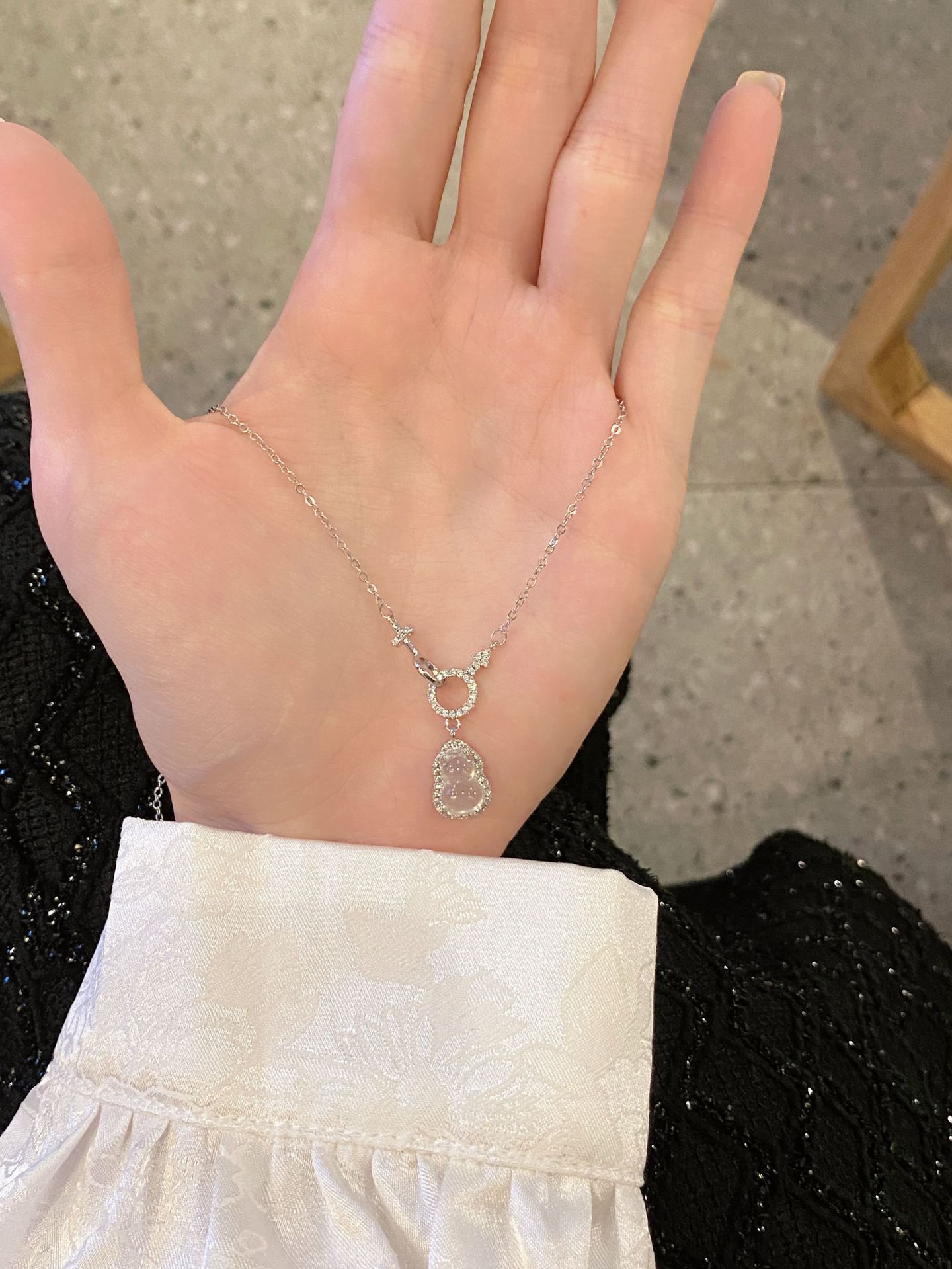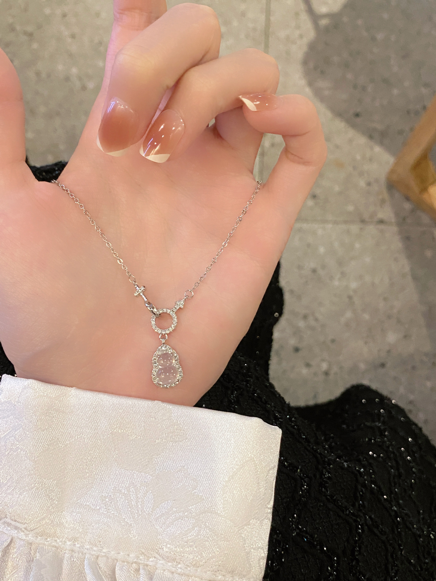 新中国式氷透ひょうたん模造玉ネックレス復古小衆ins高級環相ボタンジルコン鎖女