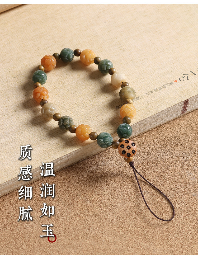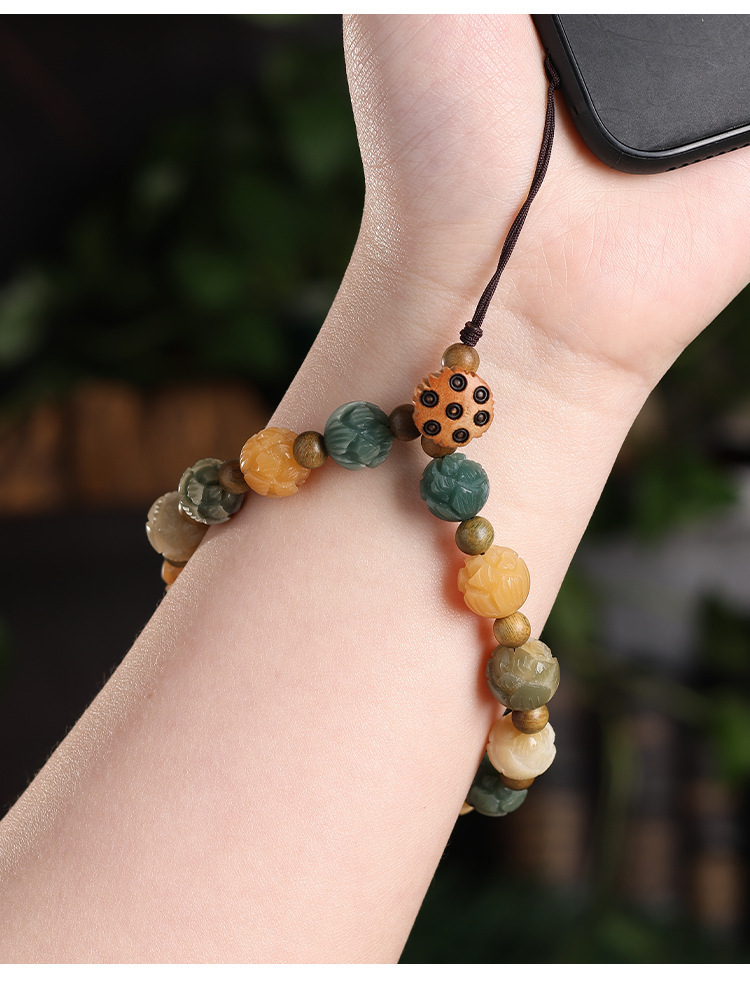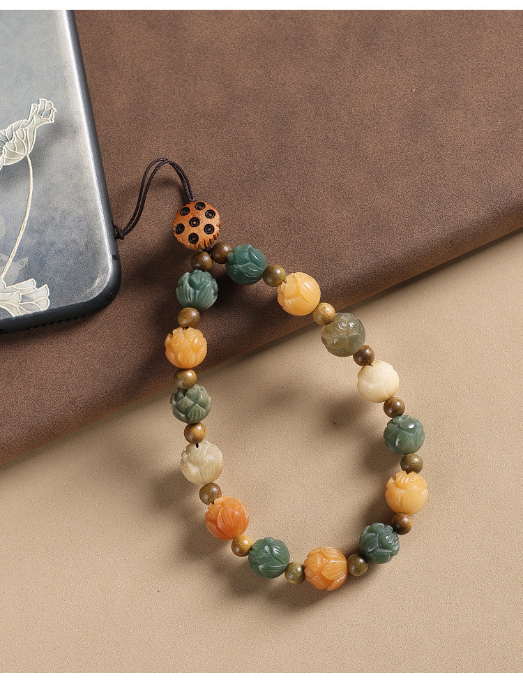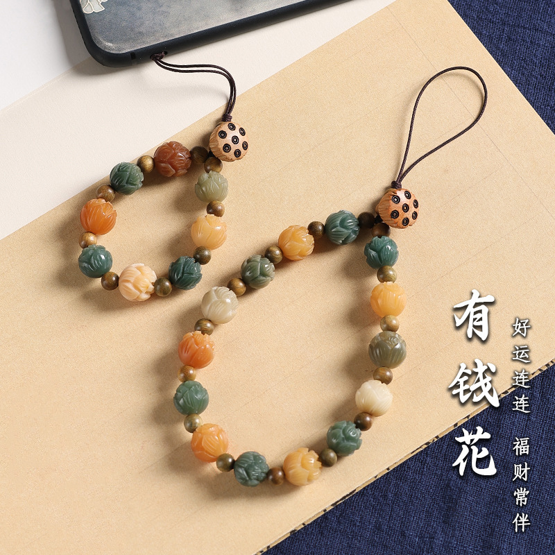 天然菩提金持ち花携帯チェーン携帯電話のペンダント新中国式国潮風携帯電話の紛失防止チェーン卸売り