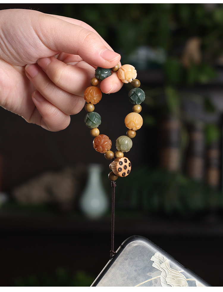天然白玉は菩提蓮の鍵をまねて携帯電話のペンダントを掛けます。