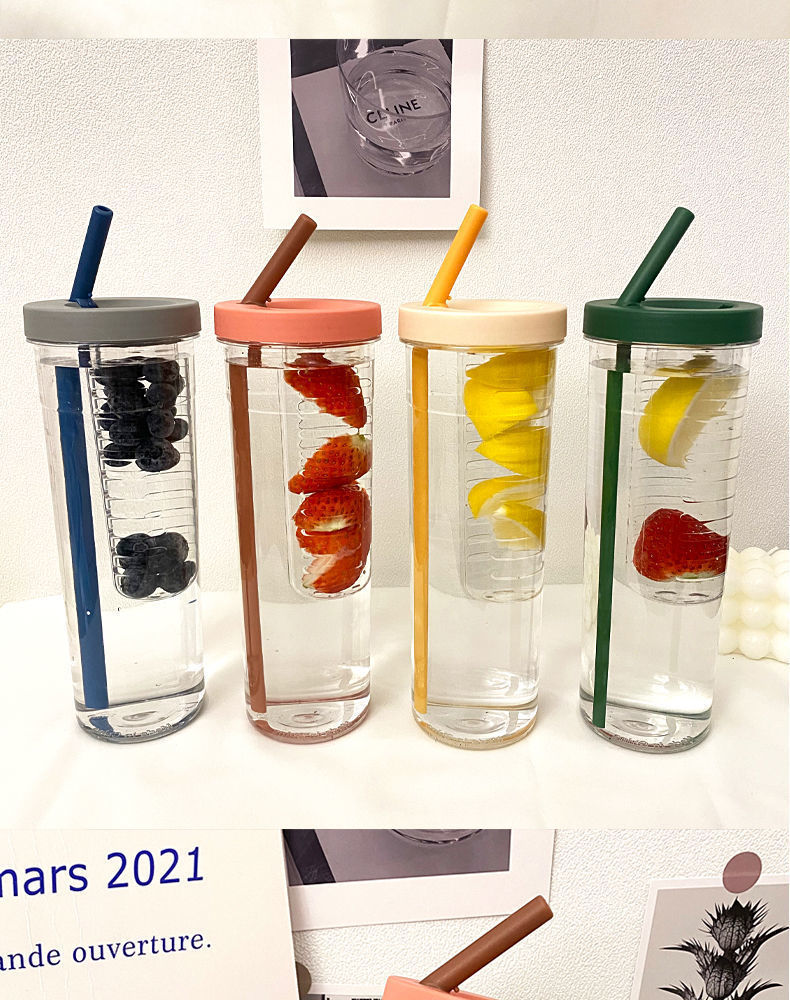 Straw-sipped flower tea fruit cup
