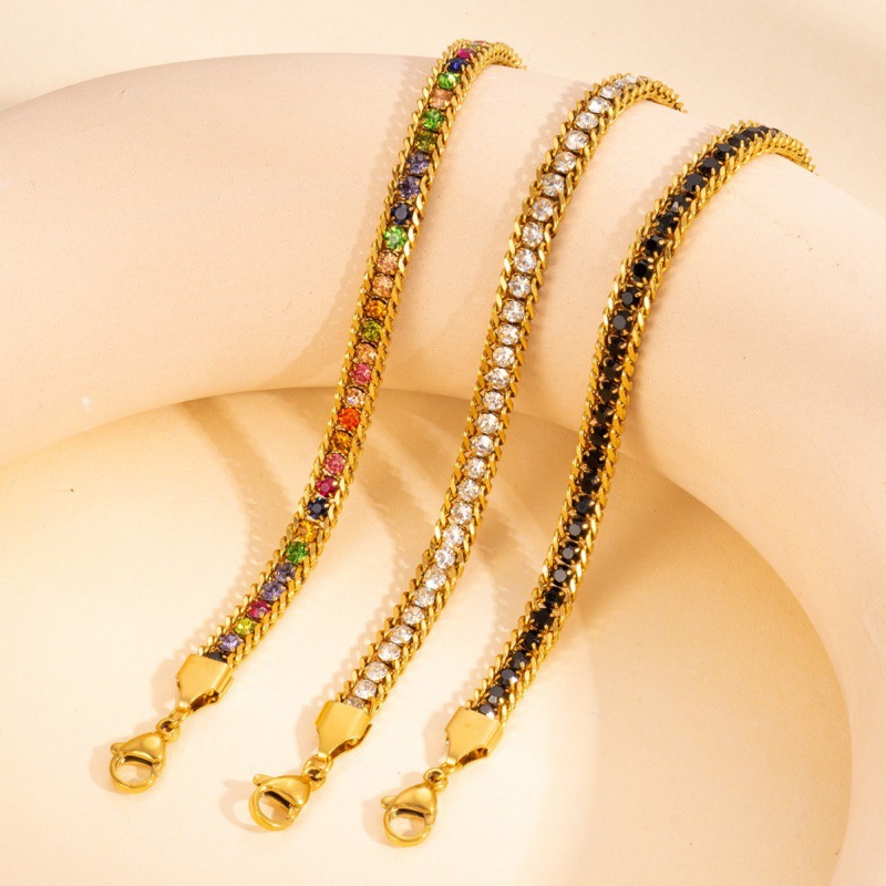 钛钢手链跨境时尚百搭镶钻女士手链轻奢高级感多色不锈钢链条饰品